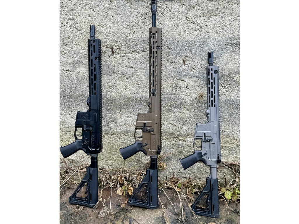 Předpažbí : Na výběr je základní M-lok, nebo příplatkový QUAD RAIL. Alternativně u delších hlavní 12,5" a více lze zvolit předpažbí sportovní M-lok PRO s odlehčením na horním railu.