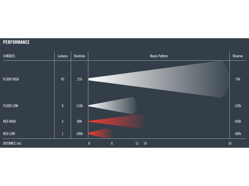 Vysoce kvalitní čelovka Princeton Tec FRED v maskované barvě Multicam od renomované americké firmy nabízí mnoho využití a svou modularitou je jasnou jedničnou na našem trhu. Čelovka Princeton Tec FRED je vyrobena z odolného polymeru a je dodávána s maskovaným elastickým řemínkem. Svítilna disponuje čtveřicí úsporných LED diod (3 bílé, 1 červená) a nabízí 2 úrovně intenzity svitu obou barev. Maximální výkon bílých LED diod je 45lm a maximální výdrž na 3 tužkové AAA baterie je až 180h (červená dioda na nízký stupeň svitu). Jednoduchým stisknutím přepnete na červené, nebo bílé světlo. Při každém zapnutí se čelovka Princeton Tec rosvítí v nízkém módu a vy si tak snadno vyberete jaká intenzita je pro vás v danou situaci nejlepší. Čelovka Princeton Tec FRED je napájena trojicí baterií AAA, které jsou součástí dodávky.