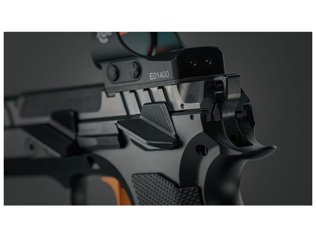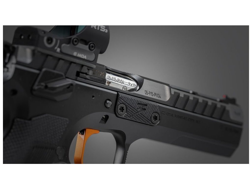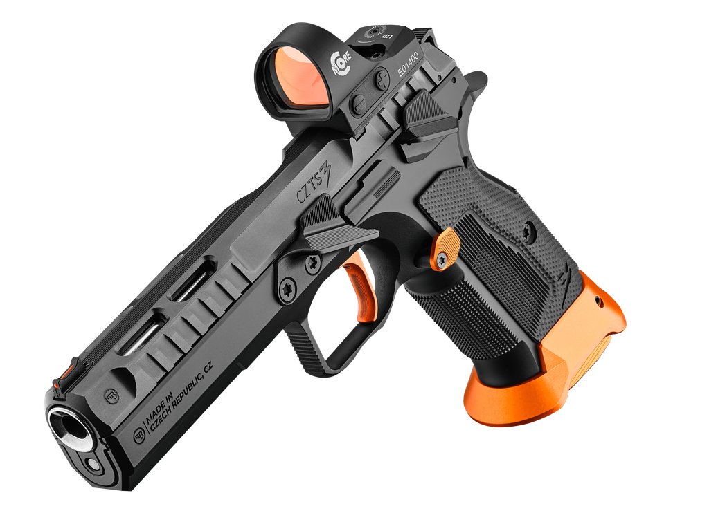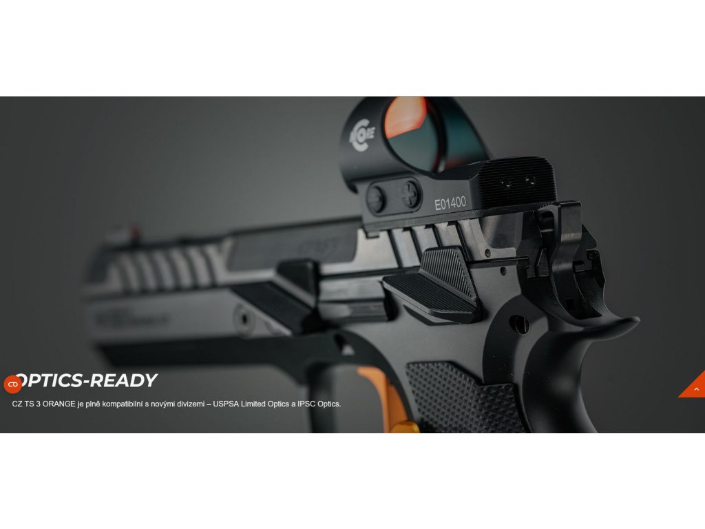 CZ TS 3 ORANGE je vlajkovým modelem nové soutěžní série IPSC Optics a USPSA Limited Optics. Kolimátor Kolimátor se montuje přímo na závěr bez potřeby montážních destiček. CZ TS 3 ORANGE podporuje nejrozšířenější footprinty – RMR, RMSc, DeltaPoint Pro a Holosun-K. Nasaďte svůj oblíbený kolimátor a vyrazte na střelnici!
