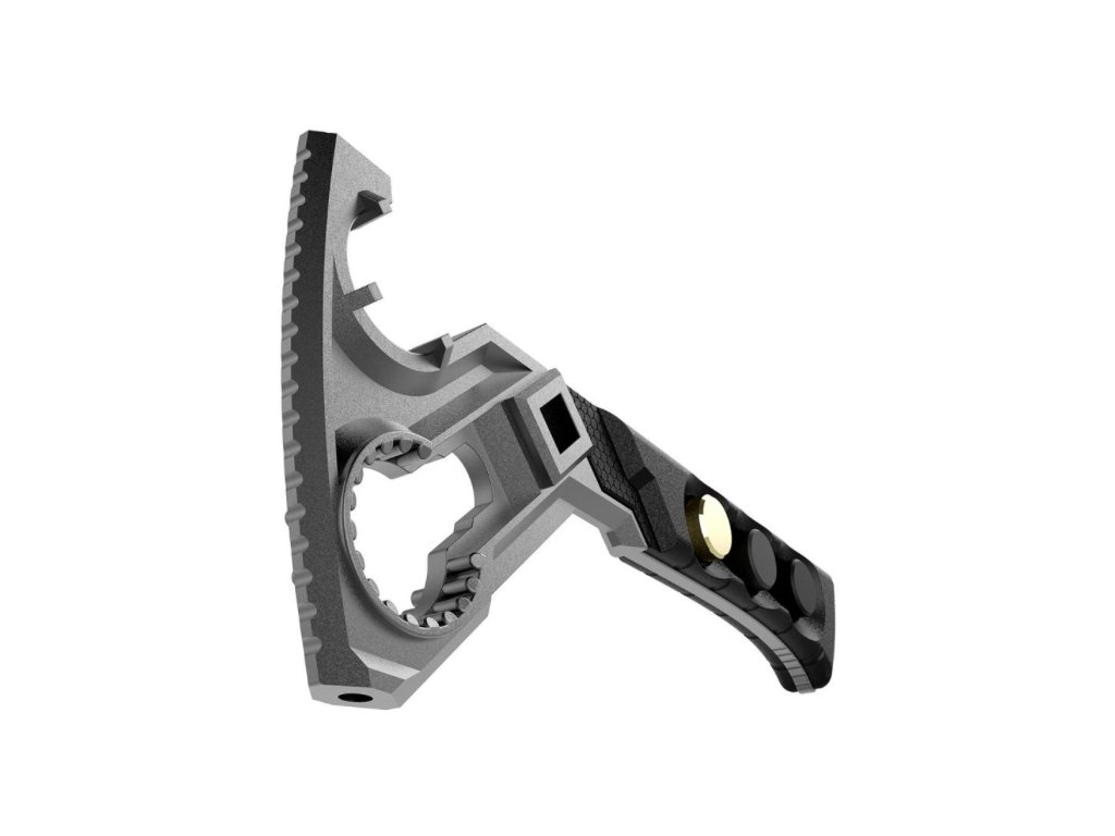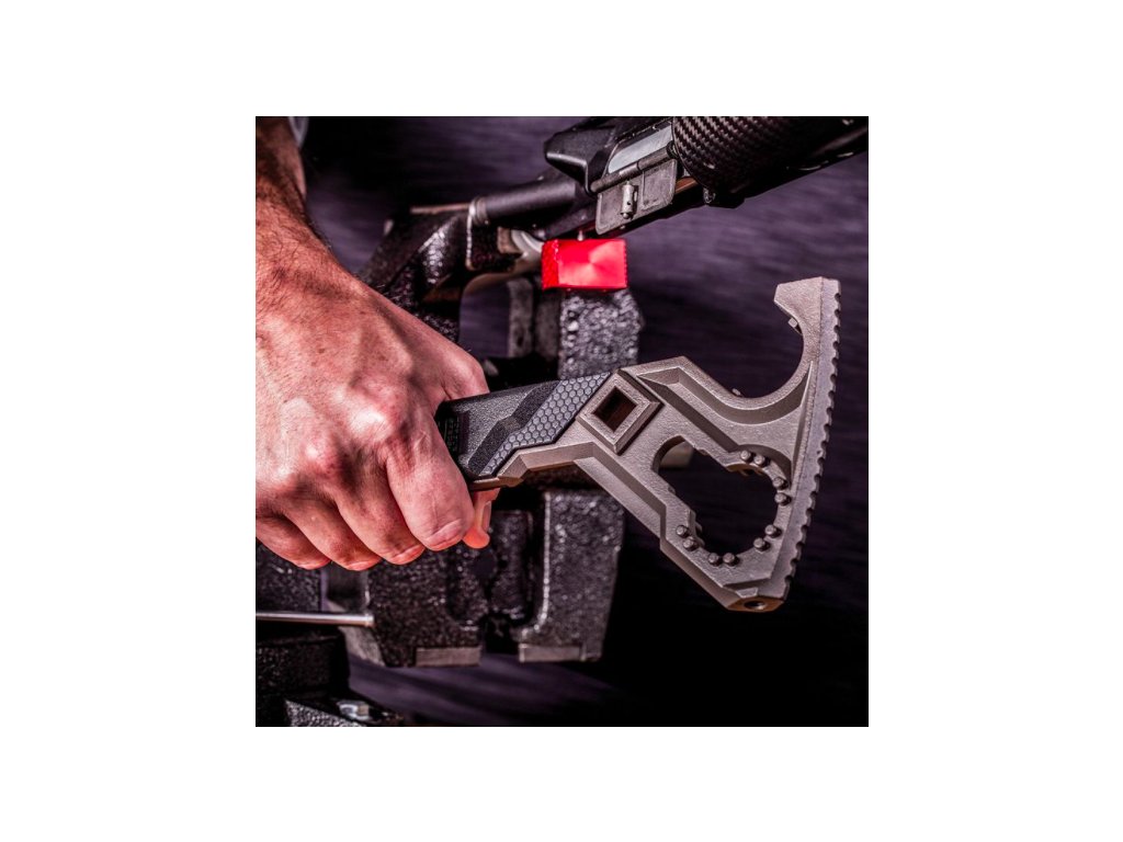 Toto je nový standard pro puškařský klíč. Chytřejší, silnější, ergonomičtější. Dobře sedne do ruky i na Vaši zbraň. Jednotlivé klíče přesně sednou na jednotlivé částí pušky - matici castle nut, úsťová zařízení, trubku pružiny. Zároveň je tento klíč vybaven vyměnitelnými hlavicemi, které z klíče udělají puškařské kladivo. Toto je ten pravý nástroj pro práci a pro Vás.
