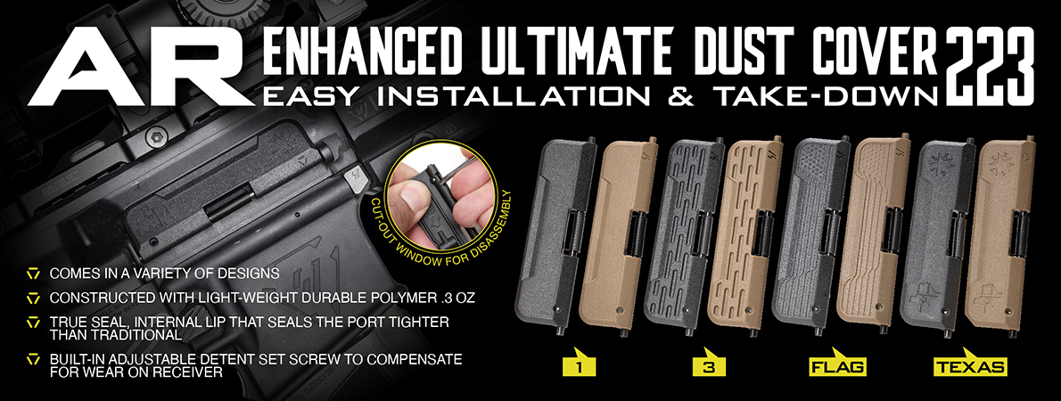 Ultimate Dust Cover pro AR-15/M16/M4 .223/5.56 je vyroben z vysoce hustého polymerového materiálu, což ho činí odolnějším a funkčnějším než tradiční kryty. Unikátní design s vnitřní západkovou tyčí umožňuje snadné připojení a odpojení krytu během 5 až 10 sekund. Obsahuje nastavovací šroub západky pro kompenzaci opotřebení na pouzdře závěru a zvýšení nebo snížení otevírací síly. Patentovaný vnitřní okraj True Seal, který těsní port pevněji než tradiční kryty výhozního okénka.