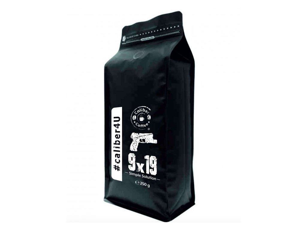 Káva je balena v černém sáčku Caliber Coffee se zipem, který zajišťuje, že káva zůstane po celou dobu skladování čerstvá. Design obalu vám vaši oblíbenou kávu připomene. Pro tuto kávu jsme zvolili téma pistolového náboje 9 x 19 mm Parabellum, který byl představen v roce 1902 německou firmou DWM pro jejich pistoli Luger. Název Parabellum je odvozen z latinského „Si vis pacem, para bellum“ („Hledáš-li mír, připrav se na válku“), což bylo moto firmy DWM. Jedná se o nejrozšířenější pistolový služební náboj na světě.