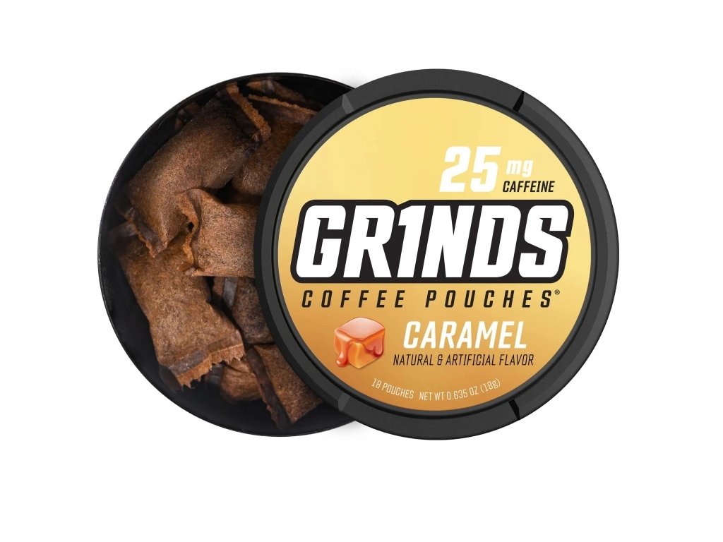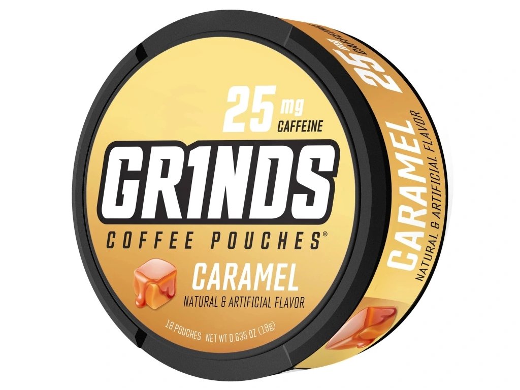 GRINDS nebo Grinds Coffee Pouches (kávové sáčky) jsou malé sáčky čerstvě mleté, ochucené kávy, které vám pomohou cítit se bystře a soustředěně po celý den nebo noc. Původně byly navrženy jako zdravá alternativa bez tabáku a nikotinu k bezdýmnému tabáku. GRINDS pomohly mnoha lidem zbavit se jejich závislosti na tabáku a doufáme, že budeme i nadále ovlivňovat svět odvykání tabáku pro ty, kteří jsou připraveni udělat změnu. Každá plechovka GRINDS 25mg obsahuje 18 sáčků s chutí výrazné kávy a sladkého karamelu. Obsahují mletou kávu, vitamíny B a taurin – ideální pro každodenní povzbuzení, soustředění i odvykání tabáku. Každý sáček obsahuje 25 mg kofeinu.
