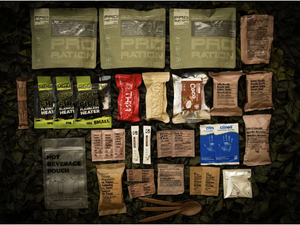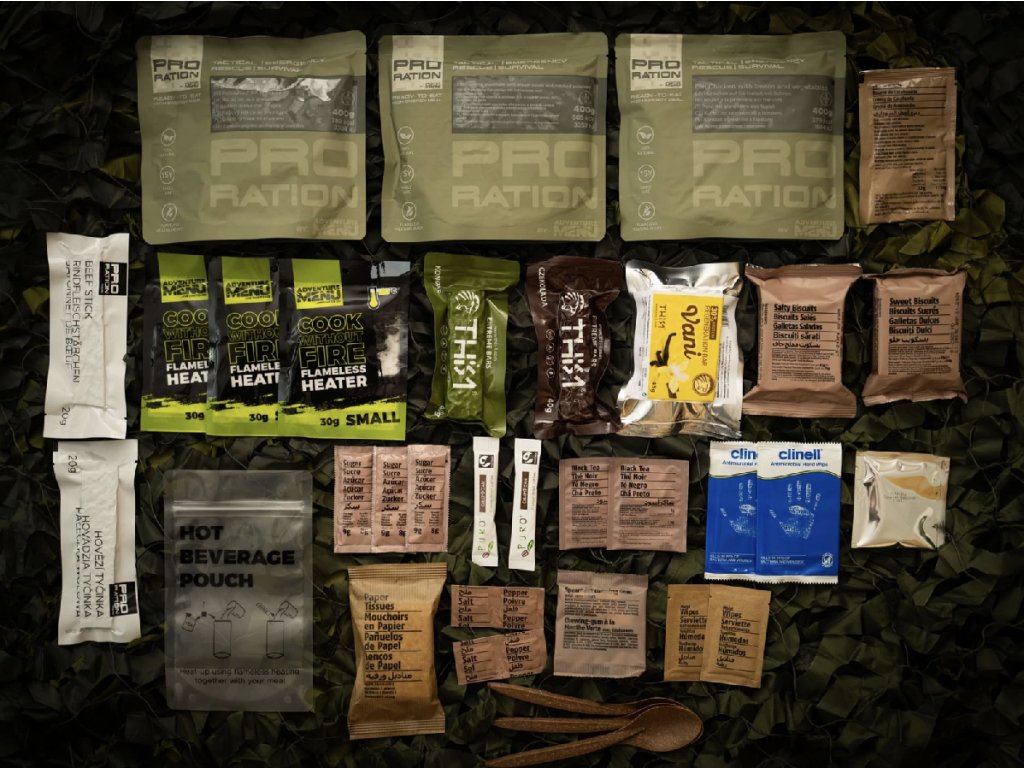Kompletní balíčky potravin, tzv. MRE/BDP jsou ve výbavě mnoha složek jako nouzová dávka potravin pro použití v polních podmínkách. Nejenom vojáci si ale zaslouží kvalitní výživu. Známý český výrobce Adventure Menu přináší profesionální řadu nouzových potravin s označením Pro Ration. Tato dávka potravin je navržena tak, aby vyhovovala nejen širokému spektru profesionálů, ale každému, kdo se chystá do náročných podmínek a potřebuje spolehlivou a především chutnou zásobu potravin. Díky mimořádné trvanlivosti a velmi vyváženému složení Vám budou tyto dávky spolehlivým společníkem v každé náročné situaci. Všechny potraviny v balíčku se pyšní naprosto bezkonkurenční trvanlivostí až 15 let u potravin a až 50 let u pitné vody. To je solidní základ pro vaše domácí zásoby v případě nouzové situace. I přes tuto extrémně dlouhou dobou trvanlivosti jsou všechny pokrmy 100% přírodní a ručně vařené, což znamená ten nejlepší zdroj energie pro Vaše tělo i mysl. Všechna hotová jídla jsou připravena k okamžité konzumaci (Ready to eat) a nepotřebujete tak žádné další vybavení. Stačí jen použít ohřívací kapsli, která je součástí balíčku a můžete začít konzumovat přiloženou lžící. Tato potravinová dávka Vás nejen zasytí a dodá potřebnou energii, ale v balíčku naleznete také nezbytné příslušenství pro přípravu a konzumaci jídla, hygienické potřeby, ale třeba i dávku vitamínů a minerálů. |