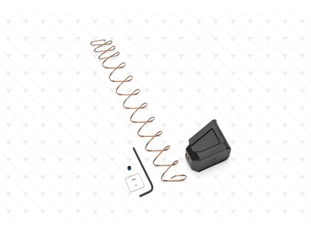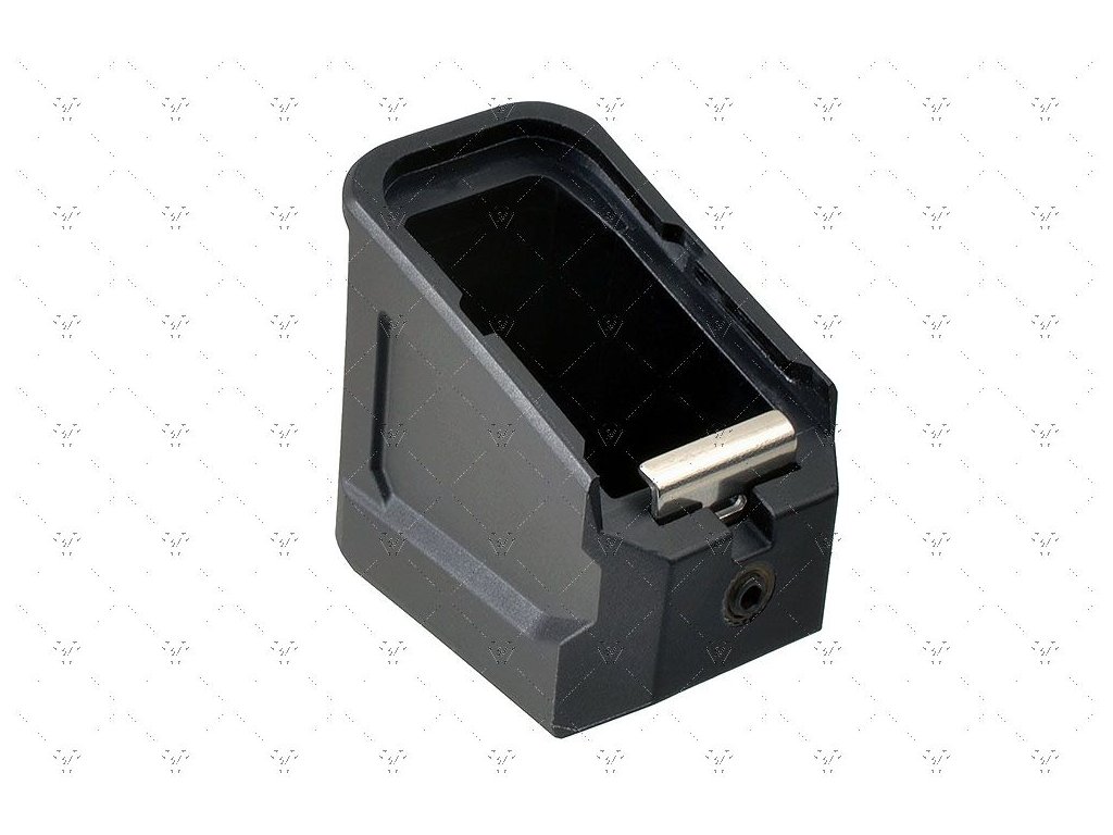 Navrženo pro snadnější a efektivnější manipulaci se zásobníkem. Vyrobeno z odolného polymeru černé barvy. Díky botce získáte navíc 6 ran ráže 9 mm Luger u Glocka 17 a v případě Glocku 22 5 ran ráže .40. Součástí balení je i ocelová uzamykatelná deska a pružina. Není třeba cokoliv dokupovat. Pozor při utahování stavěcího šroubu ať nedojde ke stržení! |