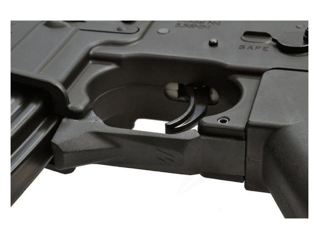 Pokud jste někdy chtěli rychlejší a spolehlivé přebíjení zásobníků ve zbrani a zároveň ochranu spouště, je tu Cobra Fang. Lučík spouště má zavalitý „tesák“, který lehce vyčnívá do profilu a umožňuje rychlejší a přesnější vložení zásobníku do zbraně. Je to nástroj, který vykonává dvě funkce. Jak již bylo psáno výše, pomáhá navádět zásobník do šachty a zároveň chrání spoušť zbraně. Fang Trigger Guard je vyroben z vysoce kvalitního polymeru. Je lehký a má skvělý vzhled. Tento produkt není kompatibilní se zásobníky Magpul PMAG M3.
