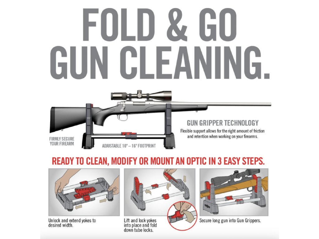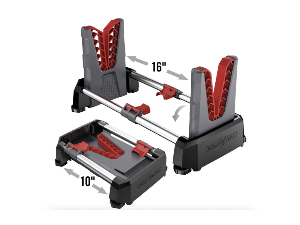 Tento praktický stojan od amerického výrobce Real Avid Vám umožní velice snadné a efektivní uchycení dlouhé zbraně pro čištění nebo jiné úpravy. Jeho lehký a skladný design umožňuje mít tento model neustále po ruce. Stavitelné nožky zaručují dobrou stabilitu i na nerovném povrchu a držák Gun Gripper bezpečně udrží Vaši zbraň na místě. Stojan lze snadno složit pro převoz nebo uskladnění. |