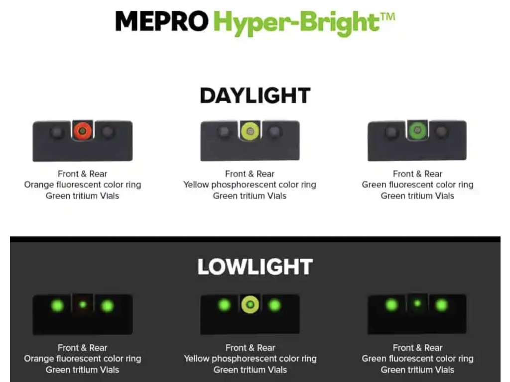 Kvalitní celokovová mířidla vyrobená v Izraeli využívající tritiové ampule zpracované ve Švýcarsku. Meprolight má dlouholeté zkušenosti s výrobou tritiových mířidel, jsou zavedená u armády Izraele (IDF) a u dalších ozbrojených složek po celém světě. Splňují požadavky dle NATO MIL-STD 810 a MIL-STD 704. Při výrobě jsou pečlivě dodržovány standardy kvality ISO9001, ISO14001 a ISO18001. Jedá se o výbornou alternativu k originálním mířidlům Glock. |