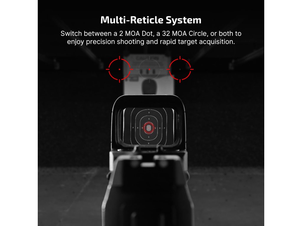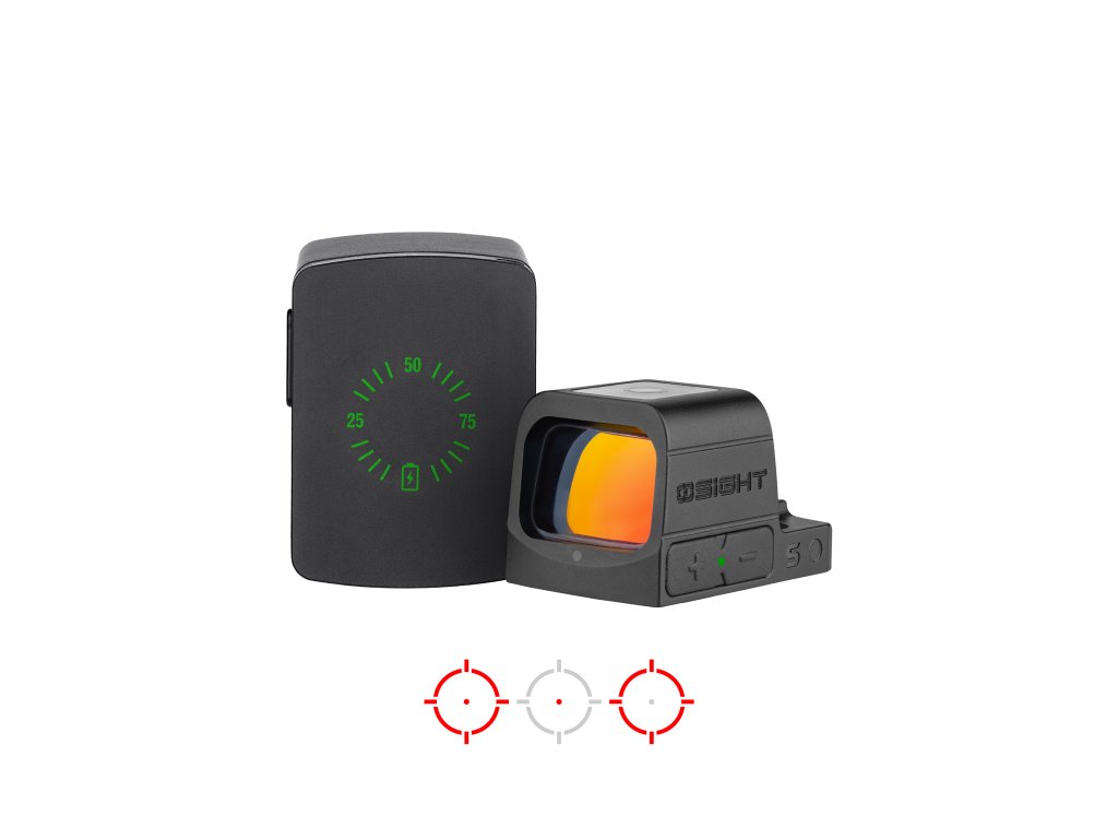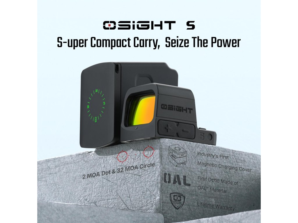 Nový reflexní kolimátor OLIGHT OSIGHT S 2 MOA přináší multiosnovový systém s možností přepínání záměrný bod 2 MOA / záměrný kruh 32 MOA / osnova 2+32 MOA v červené barvě, nebo možnost dobíjení kolimátoru přes magnetickou dobíjecí stanici. První dobíjecí kolimátor na světě. Jedná se o magnetický kryt kolimátoru, který kromě indikátoru nabití kolimátoru jej dokáže i plně nabít, a to až třikrát. Každé nabití trvá přibližně 1,5 hodiny. Při svícení na 3. úrovní vydrží baterie kolimátoru až 21 900 hodin. Kombinovaný mód kruh a tečka vydrží svítit až 20 000 hodin. V kombinaci s dobíjecí stanicí se vydrž baterie dostává až na 80 000 hodin. Optika je tvořena z pokročilé antireflexní vrstvy skla maximalizující propustnost světla pro větší jasnost. Vyrobena je z materiálu OAL, který je pevný a téměř stejně lehký jako hliník 7075 s eloxovanou úpravou úrovně III, která zajišťuje vynikající odolnost proti nárazu a korozi po dlouhou dobu své životnosti. Kolimátor je rovněž vybaven úsporným režimem, který se zapíná po 10 minutách nečinnosti, avšak díky senzoru pohybu a paměti posledního zapnutého režimu se kolimátor při sebemenším pohybu opět zapne. Uživatel si může vybrat z 10 režimů denního světla a 2 režimů svícení po noční vidění.