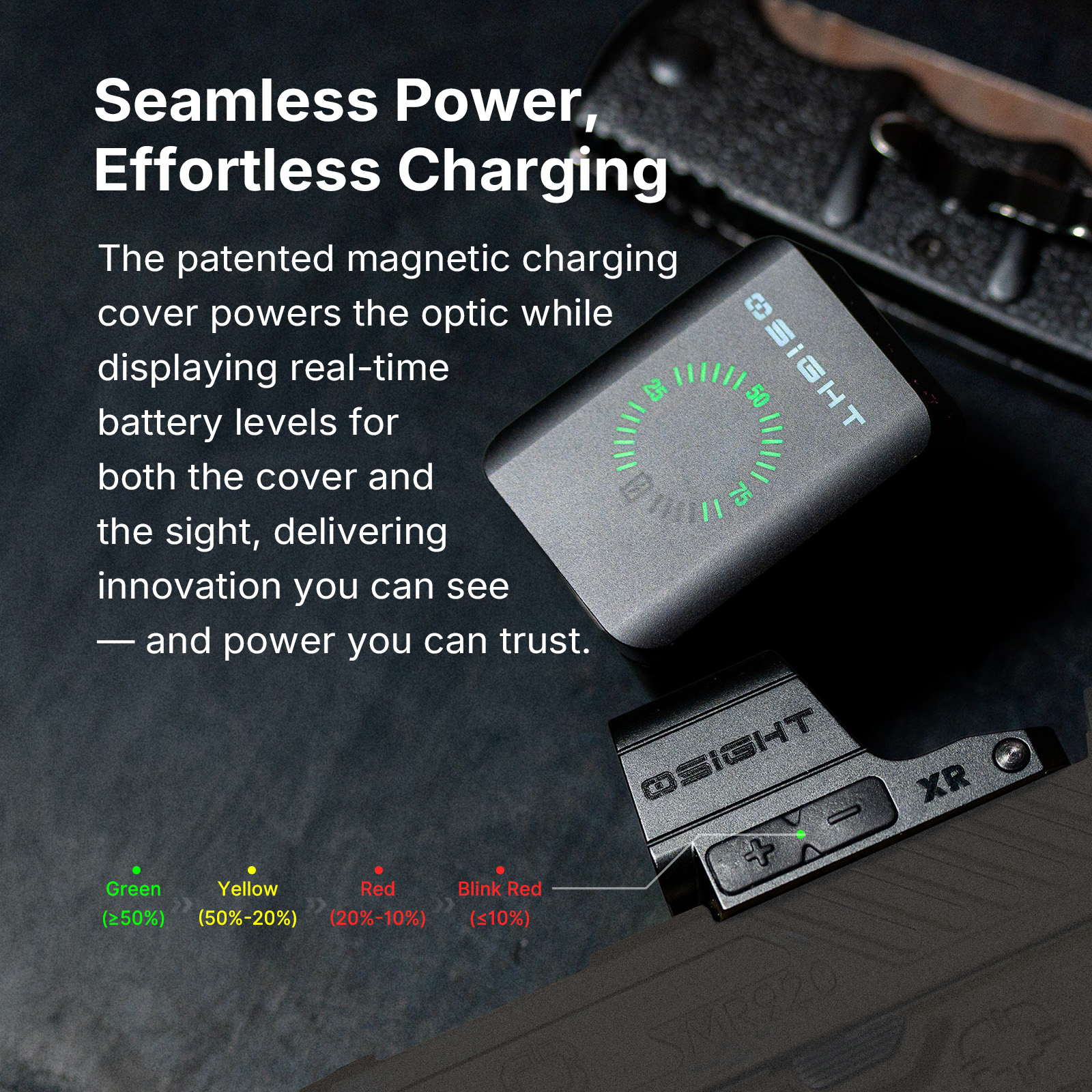Typickým prvkem značky je důraz na technologické inovace – například magnetické nabíjecí kryty s indikací baterie, velké zorné pole pro rychlé zamíření a odolná konstrukce z materiálu OAL™ navrženého pro maximální životnost.