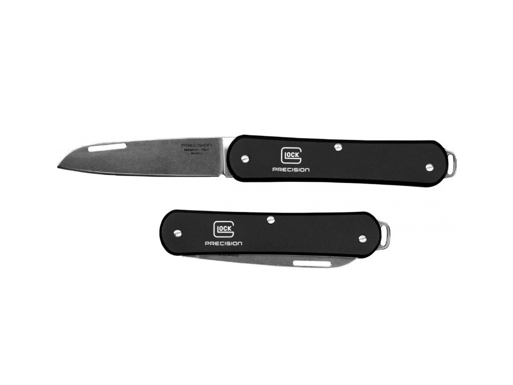 | Malý praktický zavírací kapesní nožík s logem značky GLOCK. Nůž je opatřen leštěnou čepelí o délce 45 mm z oceli N690Co a tloušťce 2 mm, zakončen je rukojetí z černého eloxovaného hliníku. Všechny šrouby jsou z leštěné nerezové oceli. | |