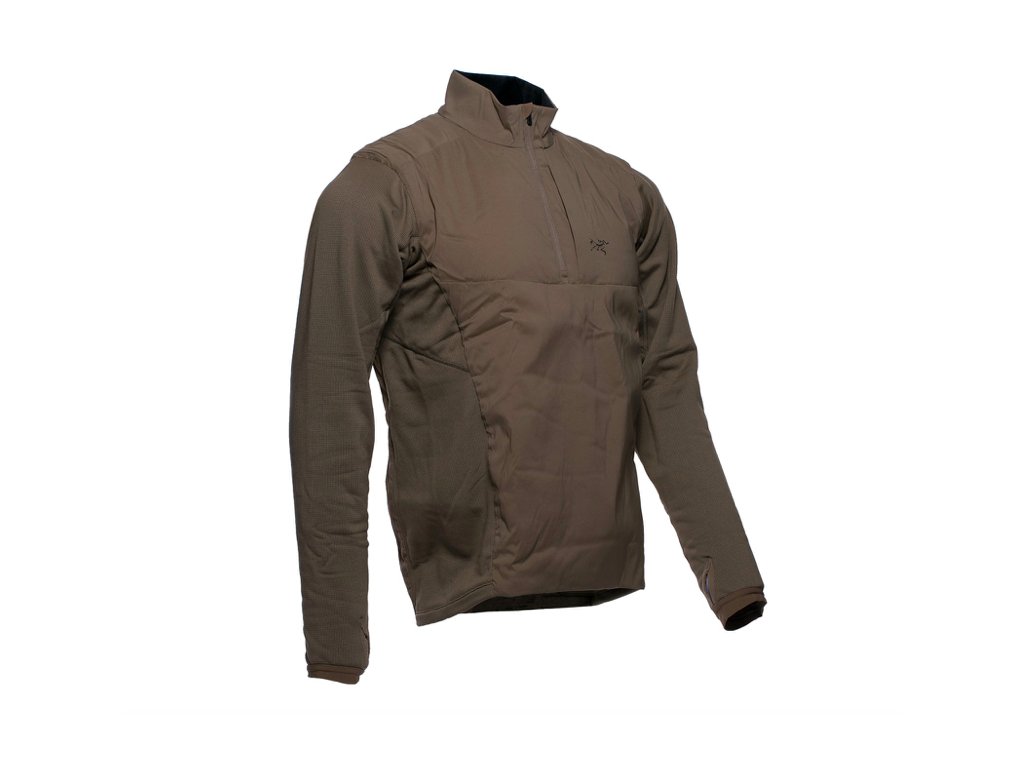 Funkční pullover Arc'teryx LEAF Naga Pullover AR je špičková část izolačního oblečení na zip určená jako střední vrstva vhodná na každodenní nošení ideálně v kombinaci s hardshell bundou. Důmyslné rozmístění plochých švů, které nikde netlačí zvyšuje komfort uživatele a střih umožňuje neomezený pohyb. Mikina je vyrobena ze špičkových materiálů POLARTEC 230gsm/6.8osy Power Stretch Knit with Hardface, CAROLTEX 71gsm/2.1osy Two Way Stretch Nylon Plain Weave a LI PENG 40gsm/1.2osy High Air Permeable Nylon Ripstop Weave. Pullover je určen primárně do chladného a deštivého počasí kde poslouží jako výborná izolační vrstva. Pokud je nošen samostatně vyniká svoji maximální odolností na části k tělu, proto je vhodné i při nošení balistických vest.