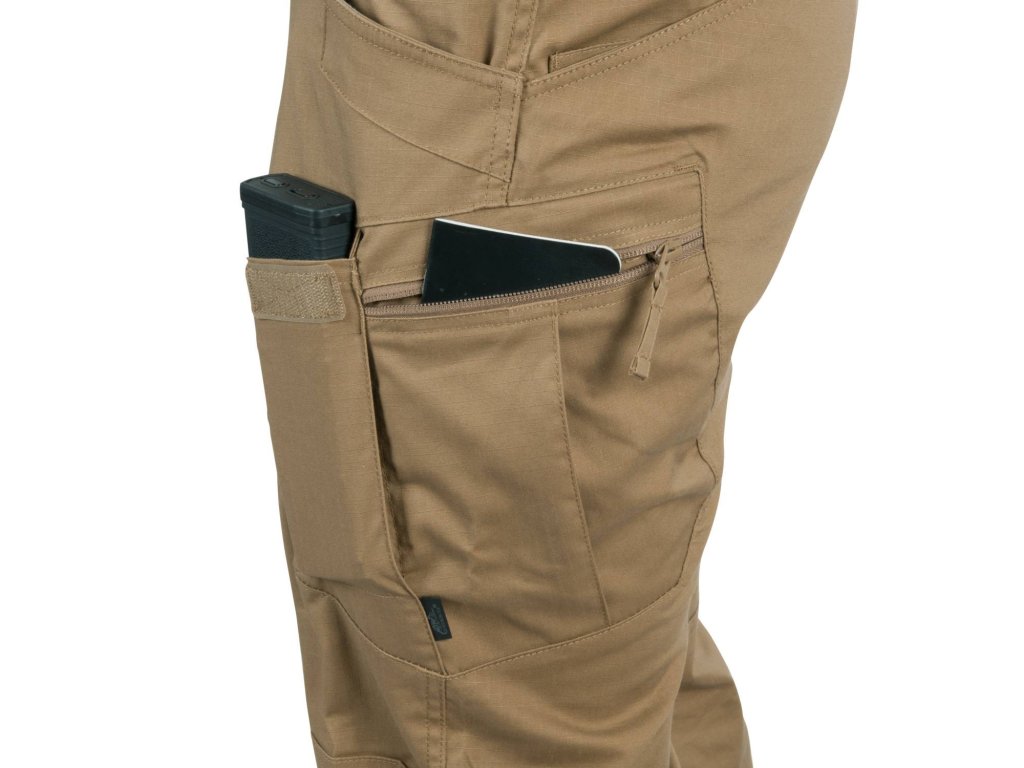 Kvalitní a pohodlné kalhoty Helikon-Tex® UTP® (Urban Tactical Pants) ve vojenském stylu navržené pro uživatele, kteří ocení praktické kapsy, nenápadný vzhled a pohodlný střih. Helikon UTP® Urban Tactical Pants jsou vyrobeny z odolného Polycotton rip-stop materiálu v poměru 60% Bavlna, 40% Polyester. Předností těchto kalhot je především množství praktických a chytrých kapes, které mají zesílené švy, zesílené jsou samozřejmě exponované části (kolena,sedací část) a možnost vložení kolenních pěnových chráničů.