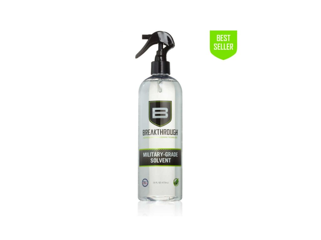 Průlomové rozpouštědlo vojenské kvality Breakthrough® Military-Grade Solvent pomáhá odstraňovat veškerý uhlík, olovo, měď, hliník a jiné zbytky kovů a nečistot. Čistí rychle a efektivně při použití menšího množství produktu než u jiných čistících prostředků.