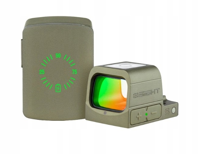 Nový reflexní kolimátor OLIGHT OSIGHT S 2 MOA přináší řadu novinek ať už možnost přepnutí ze záměrného bodu 2 MOA na záměrný kruh 32 MOA nebo možnost dobíjení kolimátoru přes magnetickou dobíjecí stanici. První dobíjecí kolimátor na světě. Jedná se o magnetický kryt kolimátoru, který kromě indikátoru nabití kolimátoru jej dokáže i plně nabít, a to až třikrát. Každé nabití trvá přibližně 1,5 hodiny. Při svícení na 3. úrovní vydrží baterie kolimátoru až 21 900 hodin. Kombinovaný mód kruh a tečka vydrží svítit až 20 000 hodin. V kombinaci s dobíjecí stanicí se vydrž baterie dostává až na 80 000 hodin. Optika je tvořena z pokročilé antireflexní vrstvy skla maximalizující propustnost světla pro větší jasnost. Vyrobena je z materiálu OAL, který je pevný a téměř stejně lehký jako hliník 7075 s eloxovanou úpravou úrovně III, která zajišťuje vynikající odolnost proti nárazu a korozi po dlouhou dobu své životnosti. Kolimátor je rovněž vybaven úsporným režimem, který se zapíná po 10 minutách nečinnosti, avšak díky senzoru pohybu a paměti posledního zapnutého režimu se kolimátor při sebemenším pohybu opět zapne. Uživatel si může vybrat z 10 režimů denního světla a 2 režimů svícení po noční vidění.