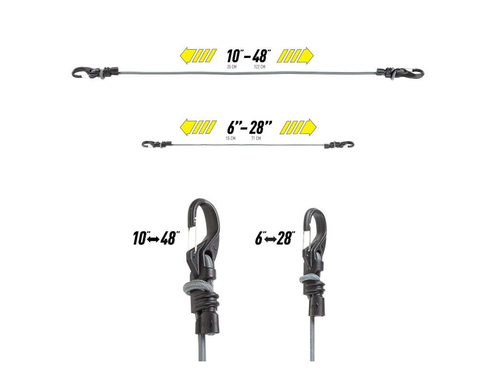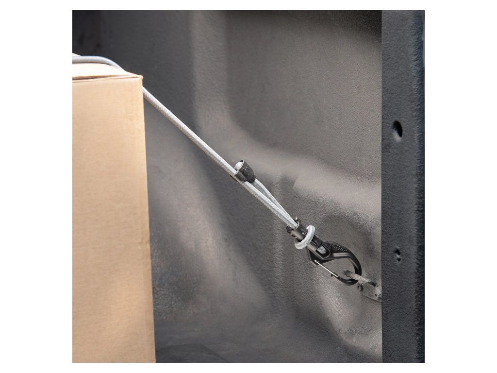Inovativní gumicuk s nastavitelnou délkou, který nabízí rychlé, bezpečné a pohodlné upevnění nákladu bez nutnosti neustálého přehákování jako u klasických gumicuků. Díky karabinám na obou koncích se pevně uchytí k upevňovacím bodům a zároveň se uzamknou, což výrazně zvyšuje bezpečnost při použití. Unikátní systém „wrap-and-lock“ umožňuje snadné nastavení délky i napnutí bez odpojení – jednoduše utáhneš na požadovanou délku a zajistíš. Odolná elastická šňůra si dlouhodobě drží své vlastnosti a je doplněna o plastové koncovky, které fixují volný konec po dotažení. Tento praktický pomocník je ideální pro zajištění nákladu, vybavení na cestách, kempování nebo každodenní použití.