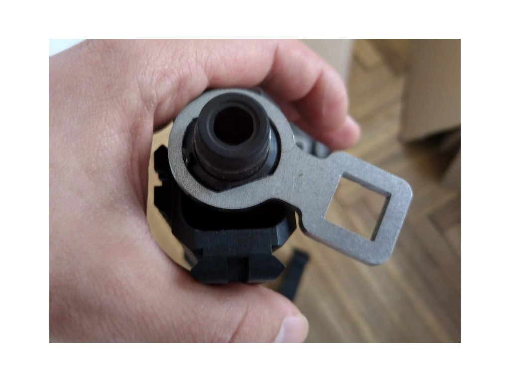 Tento nástroj slouží k demontáži hlavňové matice u krátké verze CZ Scorpion EVO 3. Díky prodlouženému krčku umožňuje nasazení i větších typů 1/2" ráčny. Zároveň lze využít i vnějších ploch pro nasazení klíče velikosti 23mm nebo 29/32".