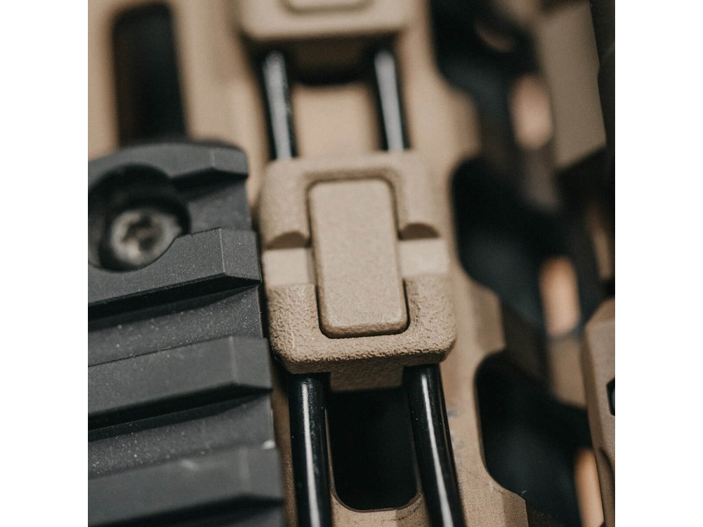 WCK (Wire Control Kit) přináší rychlé, bezpečné a čisté řešení pro vedení kabelů od svítilen a laserů, čímž zajišťuje efektivnější a uhlazenější práci s předpažbím. Sada WCK obsahuje šest snadno nasazovacích prvků kompatibilních s M-LOK. Každý prvek zabírá půl slotu, což umožňuje přesné umístění a kabeláž může být vedena přímo, pod úhlem 90° či 180°. Jednotlivé krytky lze kdykoliv a libovolně předělávat, odpadává tudíž neustálé přelepování či upevňování stahovacích pásek. WCK je kompatibilní s kovovými předpažbími M-LOK a nemusí pasovat na všechna polymerová předpažbí. WCK je navrženo pro vedení kabelů standardního průměru.
