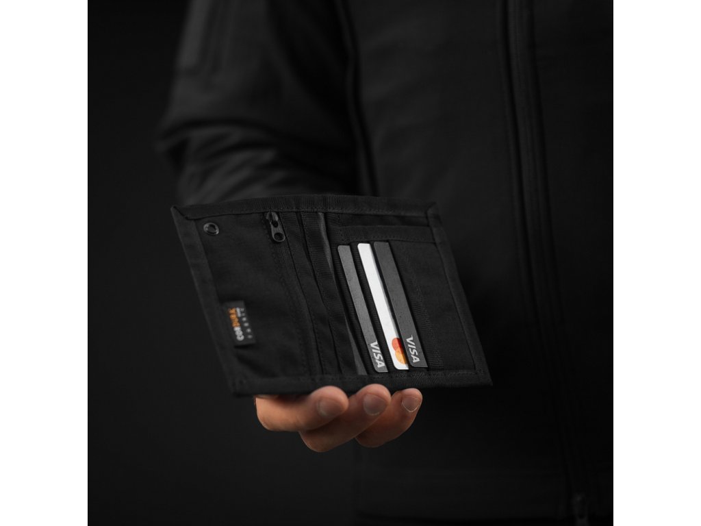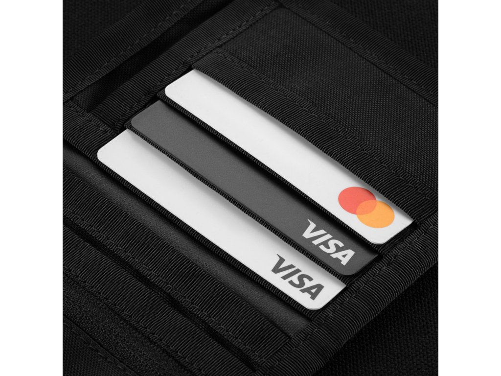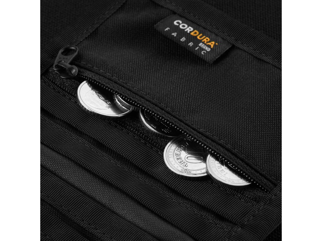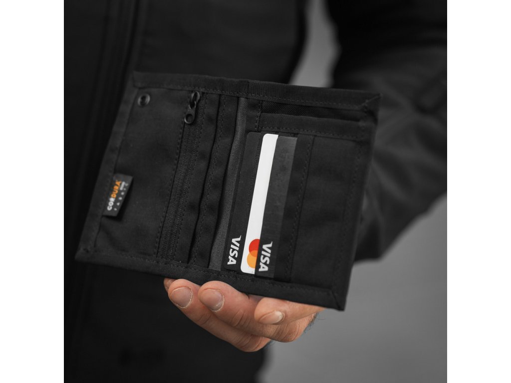 TACTICAL WALLET ELITE – praktickou a odolnou peněženku navrženou pro bezpečné uložení hotovosti, platebních karet i vizitek. Jedním z hlavních prvků je vnější kapsa na bankovky, která je navržena tak, aby při zavření peněženky pevně přitiskla hotovost k materiálu a zabránila jejímu vypadnutí. Na přední straně se nachází kovová průchodka (grommet) umožňující připevnění na řetízek nebo karabinu. Vnitřní prostor nabízí 7 přihrádek na platební karty a vizitky a kapsu na mince se spolehlivým zipem značky YKK Peněženka je vyrobena z odolného materiálu Cordura 500D, který vyniká vysokou pevností, odolností proti mechanickému poškození a zaručuje dlouhou životnost i při každodenním používání. Ideální volba pro každého, kdo hledá funkční, kompaktní a maximálně odolnou peněženku v taktickém stylu.
