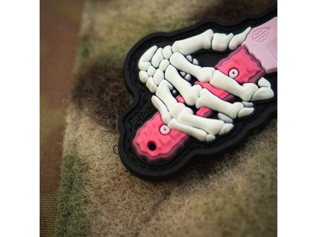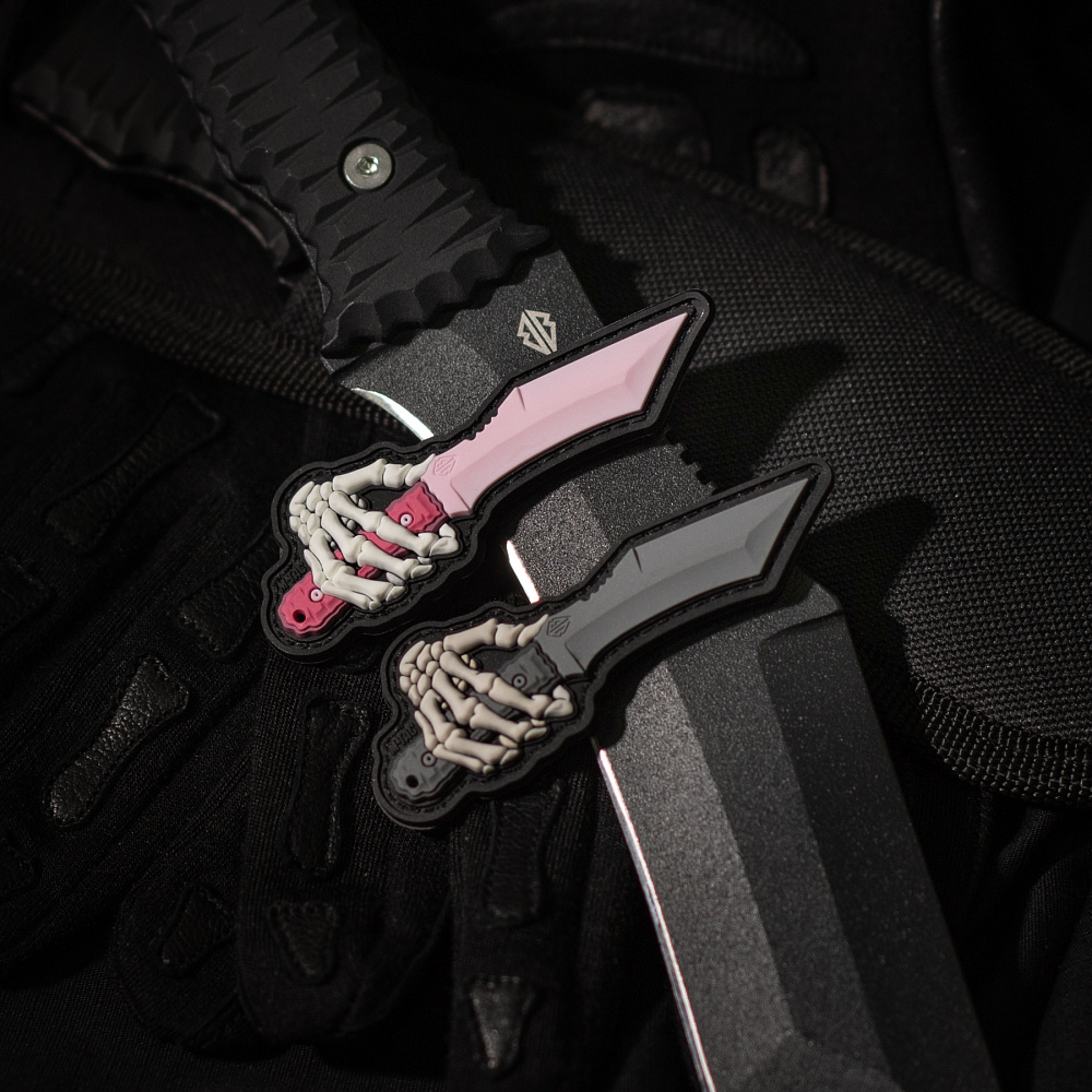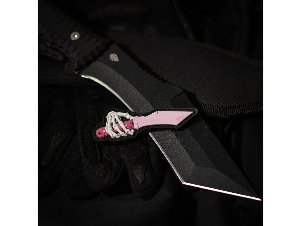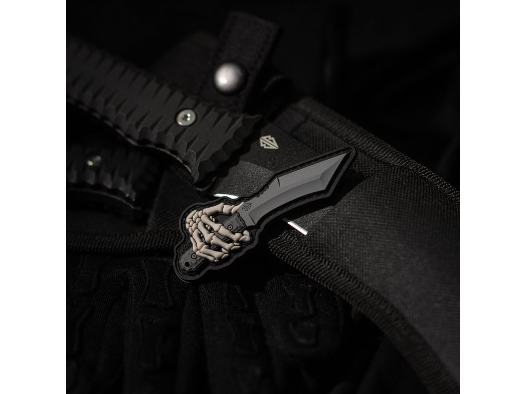 Motiv nášivky zobrazuje kostěnou ruku držící taktický nůž „Little Revenge“. Tento model nože byl vyvinut na základě zkušeností a operačních potřeb speciálních jednotek. „Little Revenge“ se osvědčil na bojišti a stal se volbou vojáků a záchranářů, kteří si nemohou dovolit chyby. Nášivka je vyrobena z kvalitního PVC (polyvinylchlorid) pomocí 3D technologie, což jí dodává plastický vzhled a realistické detaily. Lze ji snadno připevnit na oblečení či výstroj vybavenou suchým zipem (Velcro).