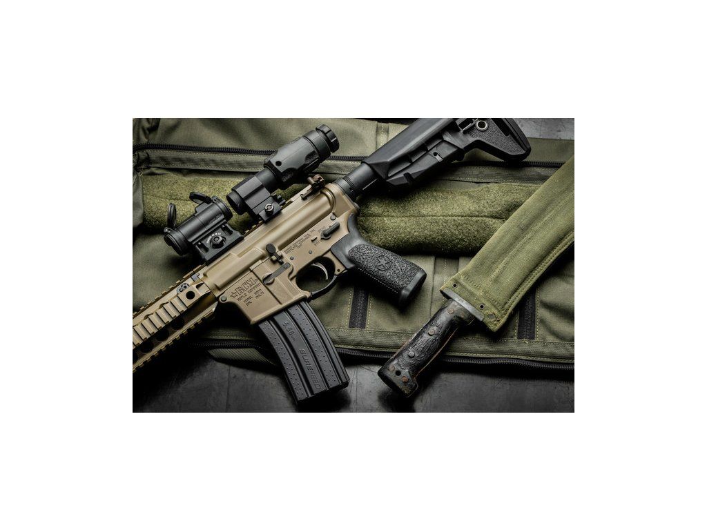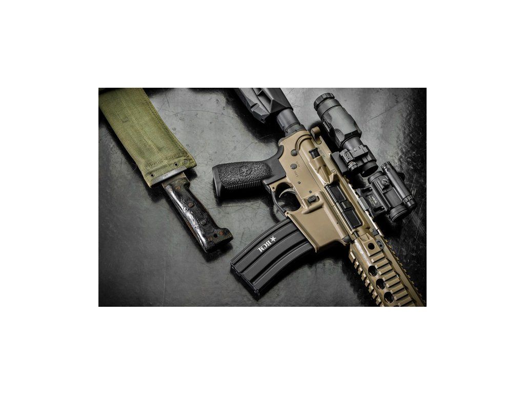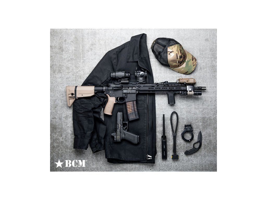 BCM Grip Mod 4 je moderní ergonomická pistolová rukojeť pro platformu AR-15/AR-10, navržená pro maximální kontrolu zbraně a komfort při střelbě. Oproti klasickým A1/A2 gripům nabízí optimalizovaný úhel úchopu, který lépe odpovídá současným střeleckým postojům a použití moderního příslušenství. Textura povrchu zajišťuje pevný a jistý úchop i v náročných podmínkách, zatímco prodloužená přední část (tang) eliminuje mezeru mezi lučíkem a rukojetí. Zvýšený „beavertail“ navíc zlepšuje ergonomii a stabilitu držení. Grip je vyroben z odolného polymeru, který zaručuje nízkou hmotnost a dlouhou životnost. Díky otevřené spodní části je konstrukce lehčí a jednodušší na údržbu. Ideální volba pro profesionální použití i sportovní střelce, kteří chtějí lepší kontrolu a pohodlí při manipulaci se zbraní.