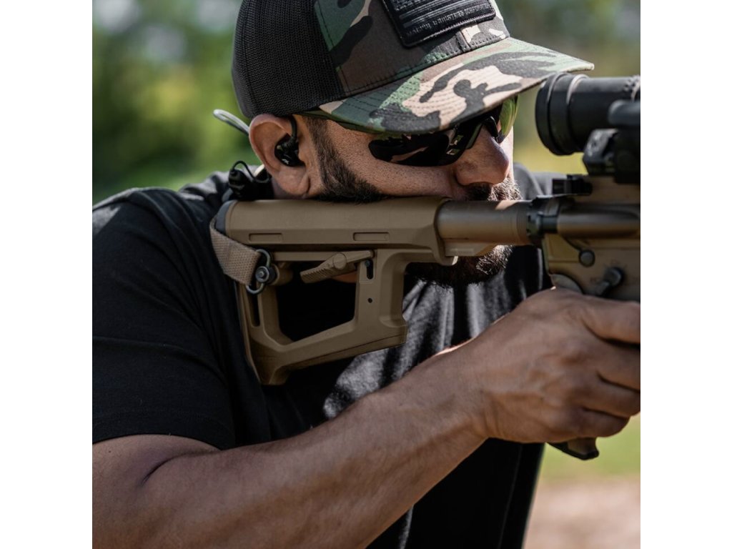 Pažba s nastavitelnou délkou rozteče od Magpul. Kompatibilní s Mil-Spec rodinou AR. Je vyrobena z polymeru, má přidanou výztuhu v uzavřeném designu. Vysoká pogumovaná patka pomůže snížit účinky zpětného rázu zbraně do ramene střelce. Nastavení výsuvu pažby se provádí pákou na pružině, takže bezpečně svírá nastavenou polohu a zabraňuje náhodnému vysunutí nebo zatažení. Pažba je robustní a je vhodá pro ostrostřelce. Pažba sedí pevně a pevně na zbrani a její tvar umožňuje v případě potřeby více než jeden způsob uchopení. Pro rychlé upevnění popruhu slouží integrovaný QD port. ![]() |