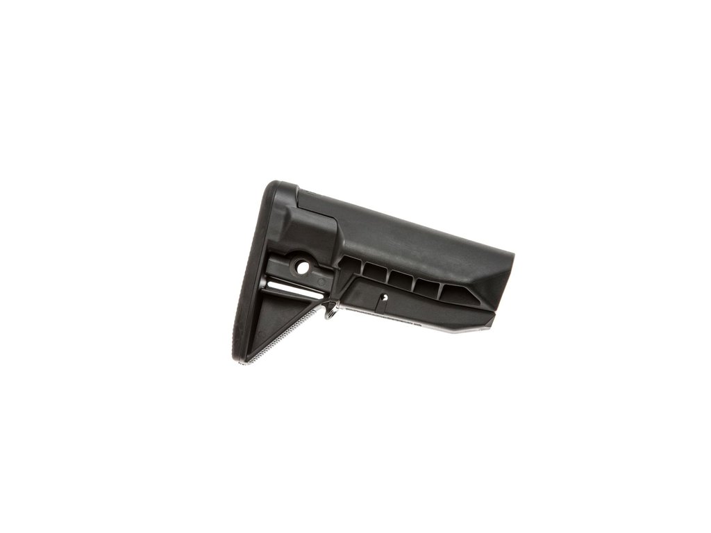 Nejodolnější polymerová pažba pro vaší mil-spec AR je zde! Čistý design, bez ostrých okrajů brání nechtěnému zachycení pušky do popruhu, molle vazby, či jiné výstroje. Modulární VBOST (modulární poutko na popruh pro operace na vozidle). Dvě různé typy oboustranných možností upevnění popruhů, včetně otočných QD. Integrovaná gumová bodka pro bezpečné umístění do ramene spolu se zvýšenou odolností. Jednoduchý modulární design. Vyrobeno v USA z velmi odolných polymerů.