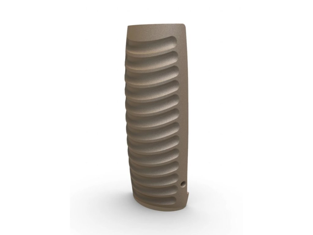 Tento hřbet rukojeti přejímá tvar i velikost od původních továrních hřbetů. Tím si můžete předem zkusit, která velikost vám bude vyhovovat. Výroba probíhá technologií MJF (multi-jet fusion) z materiálu PA12 s volitelnou povrchovou úpravou Cerakote v barvě dle vašeho výběru. Drážky na povrchu zajišťují maximální komfort a jistotu úchopu, a zároveň neřežou do dlaně jako textura původních hřbetů.
