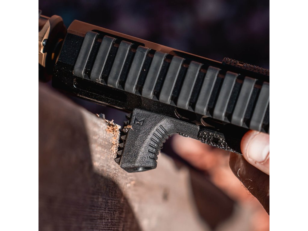 Magpul Barricade Stop je robustní opora pro ruku s výrazným drsněním, které umožňuje vytvoření stabilní platformy pro přesnější střelbu. Tento doplněk je vyroben u masivního polymerového těla, do kterého je vsazena ocelová destička s povrchovou úpravou QPQ (solnou lázní). Ocelová destička má hrubé zdrsnění pro agresivní kontakt se střeleckou oporou a je mírně zakřivená pro lepší přilnavost k nerovným povrchům. To vám umožní otáčet zbraní při zachování kontaktu a ovladatelnosti. Kompatibilní s M-LOK předpažbím. |