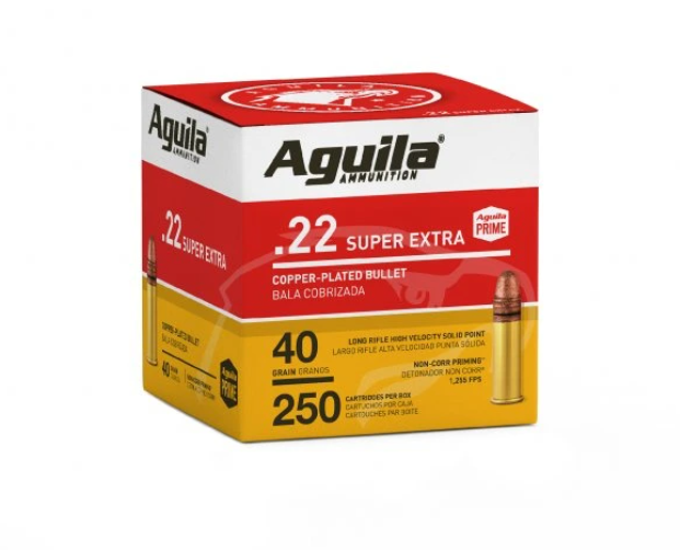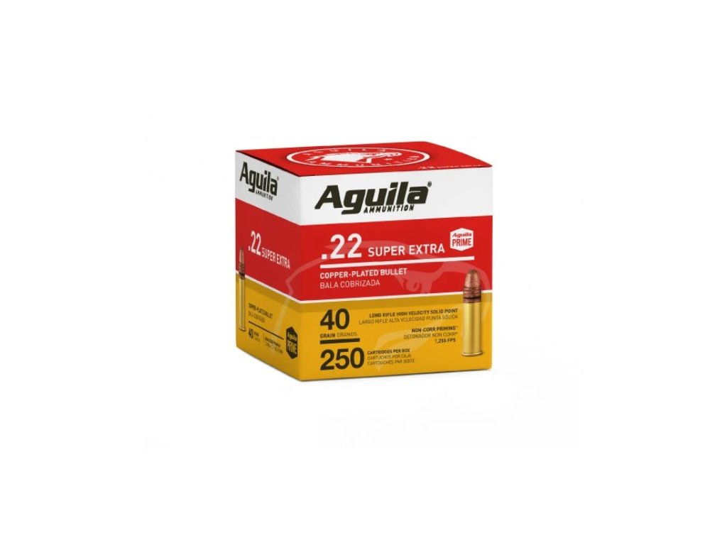 Náboj ráže .22LR od značky Aguila s typovým názvem Super Ectra HV-SP o hmotnosti 40gr s poměděnou střelou. Dosahuje rychlosti až 383 m/s s vyvinutím energie až 190 J. Tyto vysokorychlostní náboje jsou ideální pro přesnou sportovní střelbu. Měděný plášť střely poskytuje vynikající přesnost, konzistentní výkon a plynulý cyklus. Baleno po 250 kusech, v kartonu 2000 kusů.