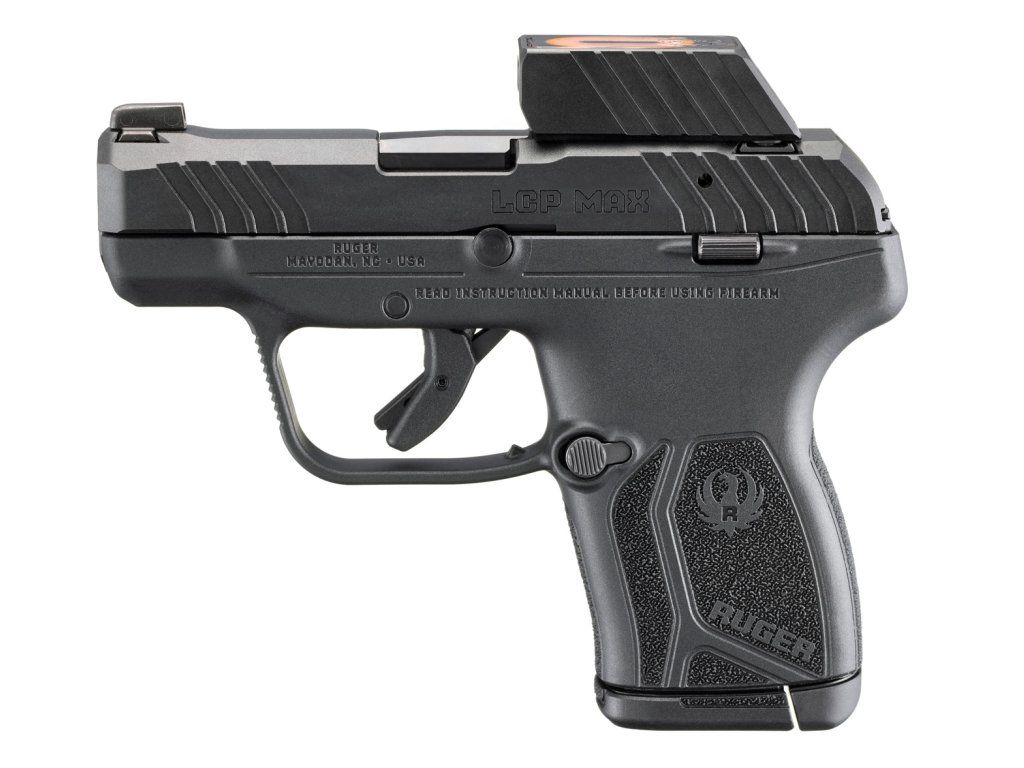 Nový vylepšený model doslova kapesní kompaktní samonabíjecí pistole Ruger LCP MAX v ráži .380 AUTO určené především pro osobní ochranu. Ke zbrani jsou vyráběny 10-ranné a 12-ranné zásobníky. 12-ranné svou délkou prodlužují rukojeť a doplňují tak všechny přednosti rukojeti vybavené hrubou texturou. 10-ranné zásobníky lze prodloužit botkou pro lepší úchop. Rám a závěr zbraně jsou vyrobeny v co nejvíce hladkém provedení pro zvýšení komfortu při nošení. Pro lepší zacílení je přední tritiové mířidlo je lemováno bílou barvou a zadní mířidlo je vyříznuto do tvar U. Je přizpůsobeno k nahrazení jinými mířidly stylu "Boddyguard-pattern". U zásobníků pro nové modely je vylepšen kompletní systém podávání nábojů, u pistole samotné byla vylepšena geometrie drážkování hlavně. Patentovaný systém opožděného odemykání hlavně zpomaluje závěr a v konečném důsledku snižuje citelný zpětný ráz ve srovnání s jinými pistolemi ráže .380 Auto. Pistole využívá bezpečný, spolehlivý a osvědčený spoušťový systém Secure Action™ od společnosti Ruger, který kombinuje chráněný úderník uvnitř zbraně a spoušťovou pojistku. Spoušť má krátký a hladký chod. Pistole je vybavena oboustranným vypouštěčem zásobníku. V základu je kapacita zbraně 10+1. Závěr je vyroben z ocelové slitiny s černou nitridovou úpravou. Široký je 19 mm. Bez vnější manuální pojistky. Kolimátor ReadyDot Micro Reflex. Materiál hlavně tvoří slitina z oceli s černou povrchovou nitridací. Opatřena je 6 drážkami s pravotočivým stoupáním 1:16" RH. Délka hlavně je 71 mm, celkové délka zbraně 131 mm, výška 115 mm. Váha pistole s prázdným 10-ranný zásobníkem je 311, 8 g.