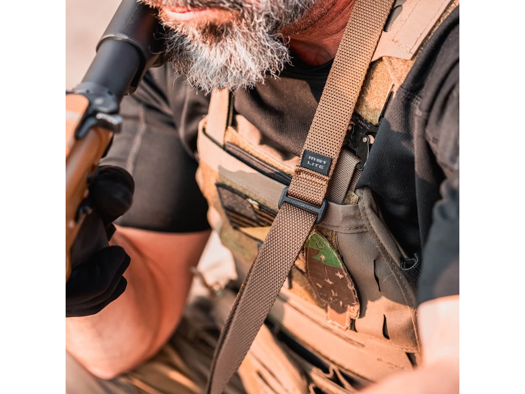 Dvoubodový popruh MS1 Sling je kompaktnější verzí univerzálního MS1 Rifle Slingu. Je vyroben z tkaného 25 mm širokého jednovrstvého popruhu, který výrazně snižuje objem, ale zachovává vysokou pevnost a odolnost. Díky této speciální vazbě se popruh nekroutí a neroluje a zůstává pohodlný i při delším nošení. Jako ostatní Magpul popruhy má i tento model výhodu oproti žmolkování a odírání. Díky menší velikosti se popruh lépe zaskladňuje. MS1 Lite využívá kompaktní posuvník, který je navržen speciálně pro tuto verzi. Umožňuje rychlé a bezpečné nastavení délky bez prokluzů, bez volných smyček, ocásků a dalších prvků, které by umožnili nežádoucí záchyty popruhu o okolí. Popruh usnadňuje přechody z ramene na rameno, rychlou úpravu pro pohodlné nošení i oporu při střelbě z různých pozic. MS1 Lite je ideální pro lehčí nebo menší zbraně. Je kompatibilní s řadou samostatně prodávaných adaptérů systému MS3 a MS4 (Paraclip, QDM, QD Sling Swivel), takže jej snadno upravíte dle svých potřeb. Navzdory kompaktním rozměrům MS1 Lite prochází stejným přísným laboratorním a terénním testovaní jako ostatní modely značky MAGPUL. Odolává mokru, suchu i písku, takže se osvědčí v terénu, na střelnici, ale i při každodenním nošení.