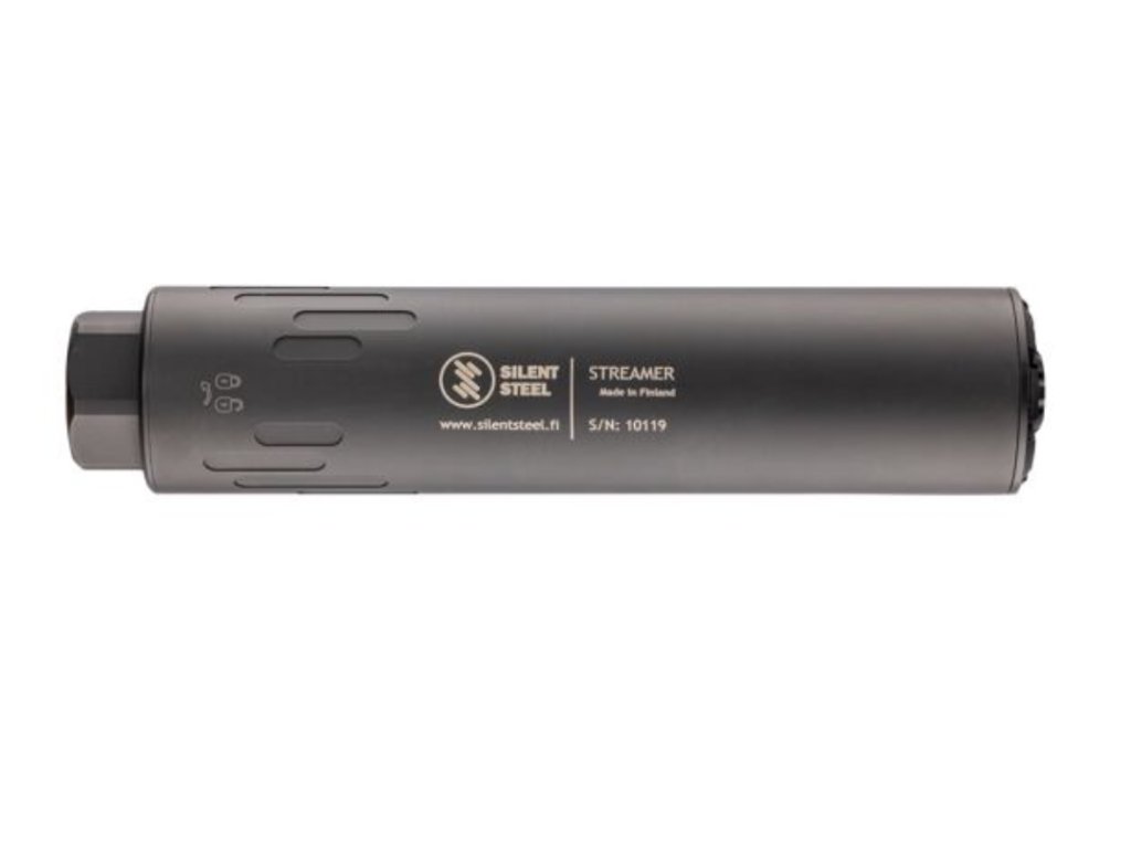 Špičkový finský výrobce tlumičů hluku Silent Steel opravdu ví, co dělá. Vysoký standard kvality je znát v každém produktu. Co jistě každého zajímá v první řadě, je konstrukční řešení tlumičů zmíněné značky. Je revoluční. Vnitřní prostor tlumiče je dimenzován tak, aby veškeré plyny plynule prošly až ven, aniž byste museli jakkoliv upravovat gasblock či cokoliv jiného. Nespornou výhodou je, že toxické plyny a zplodiny hoření vytékají vpřed a střelec tak dýchá pouze čistý víceméně vzduch. Nedochází tak k znatelnému zkracování životnosti hlavně. Na výběr jsou tlumiče silent steel ve třech provedeních. Micro, compact a standard. Všechny varianty používají řízený výplach FLOW THROUGH. Tlumiče jsou multirážové a při výměně vnitřní vložky můžete z tlumiče ráže 9mm udělat tlumič ráže .223Rem i 308Win. Tlumiče mají samodotahovací funkci díky vnitřní turbíně, která při každém výstřelu moderuje tok plynů tak, aby docházelo k utahování tlumiče na úsťovém zařízení. Na objednávku lze tlumič dodat v barevném provedení FDE a OD GREEN. Na skladě držíme černé varianty na ráži .223Rem, ale lze dodat i na varzi 9mm luger či 308Win. Aktuálně se jedná o nejlepší volbu na samonabíjecí pušky AR-15 z hlediska útlumu, životnosti a řízeného výplachu plynů.