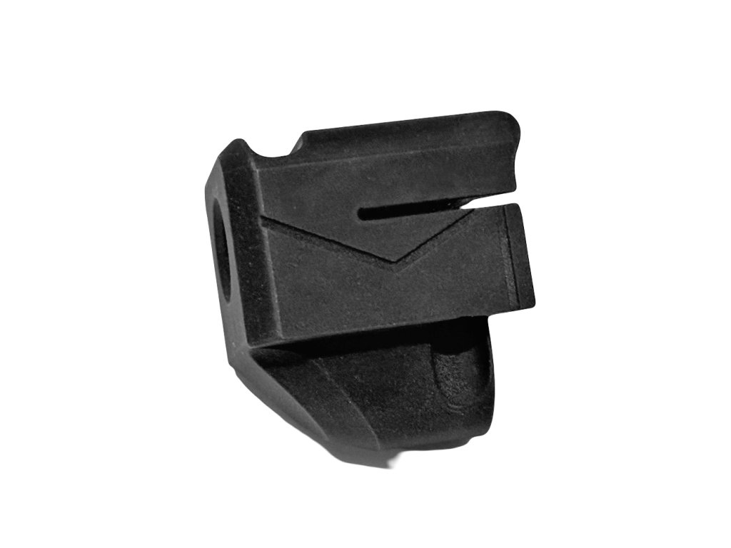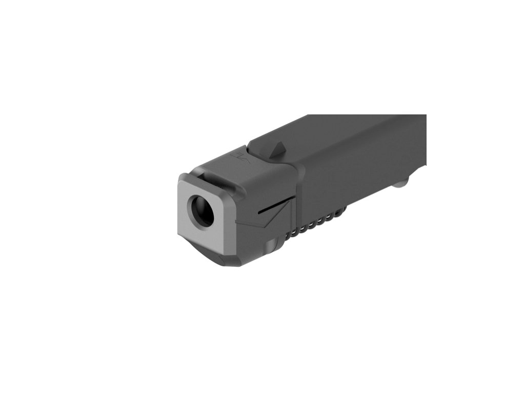 Kompenzátor pro zbraně GLOCK ráže 9mm v krátkém provedení. Pasuje na zbraně s tovární prodlouženou hlavní se závitem M13,5x1 LH. Navržen je tak, aby perfektně lícoval se závěrem zbraně 5. generace bez zbytečných mezer a přechodů. Takový doplněk, díky odvodu plynů při výstřelu jedním portem nahoru, snižuje zpětný ráz, čímž se zlepší ovladatelnost zbraně, zrychlí se a zpřesní střelba. Tento skvělý díl je vyroben v České republice z leteckého duralu EW AW 7075 T6 pomocí CNC strojů a opatřen matným černým eloxem Kompenzátor se upevňuje na tovární hlavně s prodlouženou hlavní se závitem M13,5x1 LH dvěma šrouby, jejichž utažením se kompenzátor zajistí proti pohybu. Návod pro instalaci ZDE. |