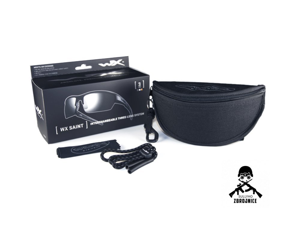 Nenápadné černé brýle Wiley X Saint s variabilními čočkami jsou určeny především střelcům a lovcům, ale také sportovcům a všem, kteří potřebují pružně reagovat na náhlou změnu počasí a viditelnosti. Čočky je totiž možné dokoupit a snadno měnit za jiné, dle aktuální potřeby. Součástí balení jsou troje čočky.