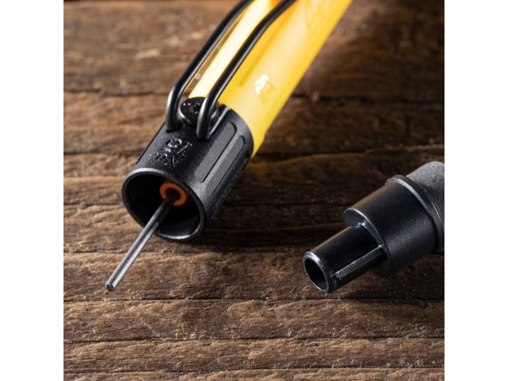 ![]() Mechanické tužky Rite in the Rain se jednoduše doplňují – stačí vložit jednu tuhu do těla tužky pod gumu. Dostatečně jemné pro zaznamenání detailů, ale zároveň dost silné, aby obstály i na stavbě. Tuhy o průměru 1,3 mm a tvrdosti HB jsou připravené zvládnout jakýkoliv úkol. Uložené v odolné krabičce, která udrží vaši zásobu tuh v bezpečí a vaše tužky připravené k použití.