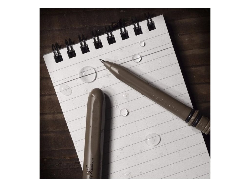 ![]() Kapesní EDC pero Rite in the Rain píše bez ohledu na to, co se děje. Píše, když je papír mokrý. Píše vzhůru nohama. Víčko pevně zacvakne na konec pera a vytvoří tak pohodlné tělo standardní velikosti. Speciální inkoust a unikátní systém dávkování, používaný výhradně v perech Rite in the Rain, zajišťují plynulé psaní bez vynechávání i za velmi vlhkých podmínek. Tlaková náplň funguje v teplotách od -34 °C do +121 °C, pod vodou (až do hloubky 10,5 metru) a v jakékoli poloze.