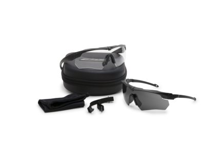 Brýle ESS Crowbar střelecké brýle s balistickou odolností s černým rámem, stříbrným logem, čirými a kouřově šedými skly